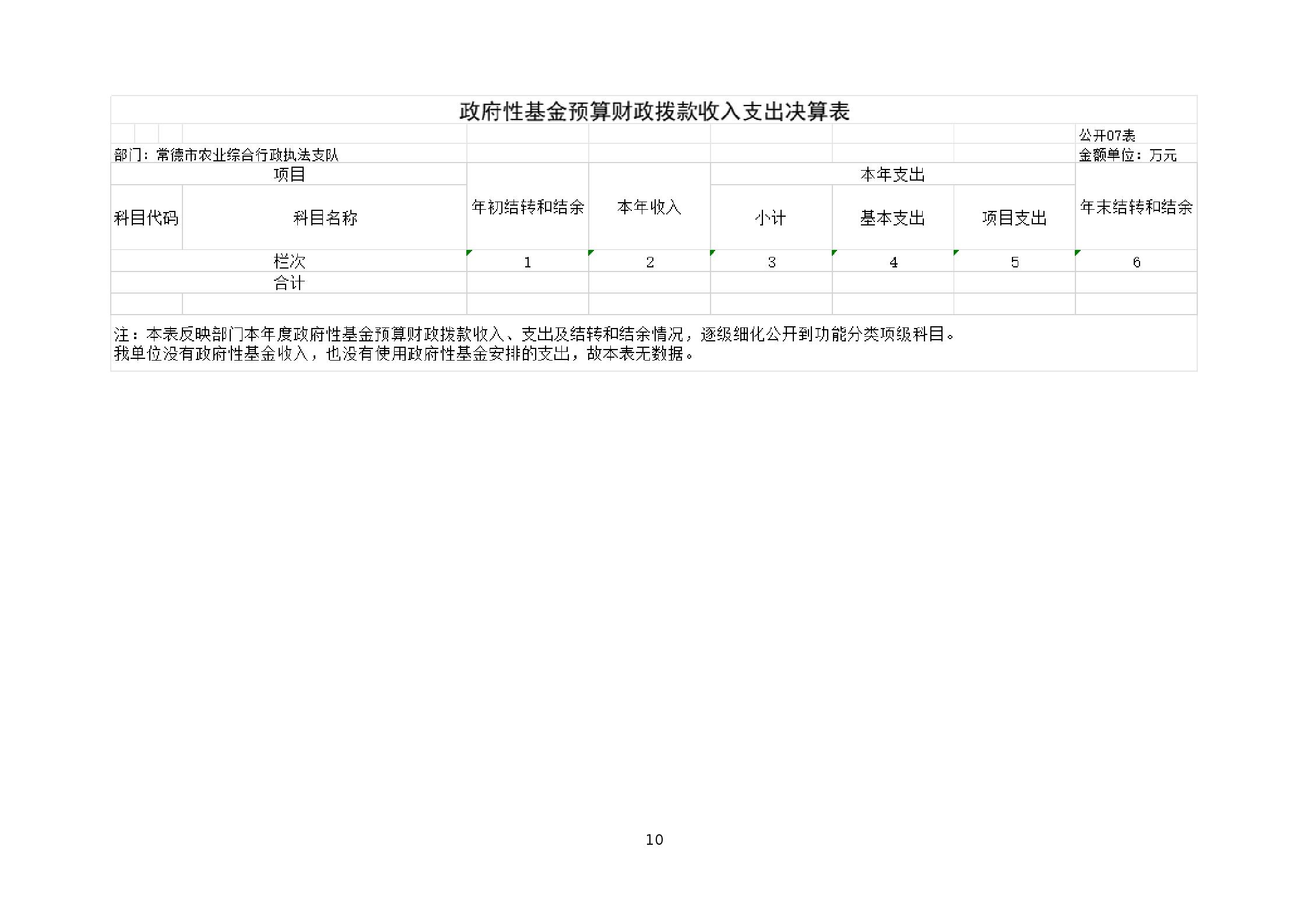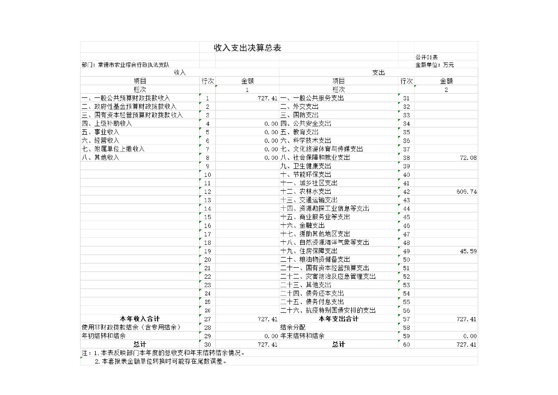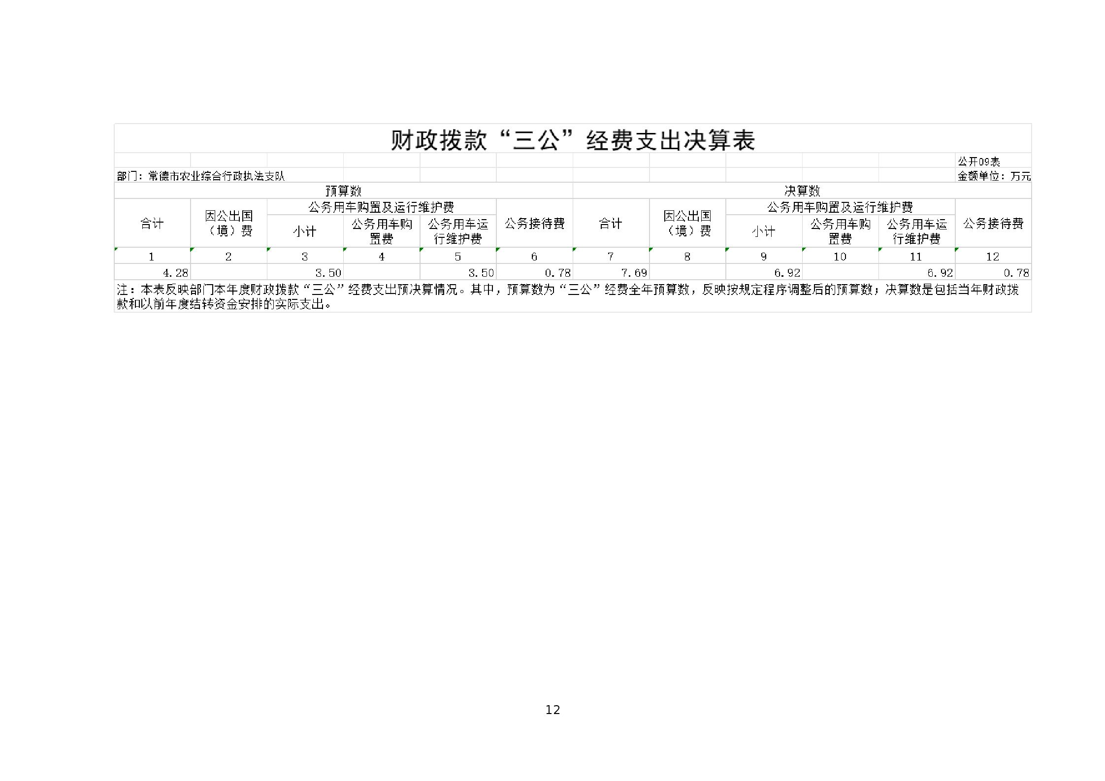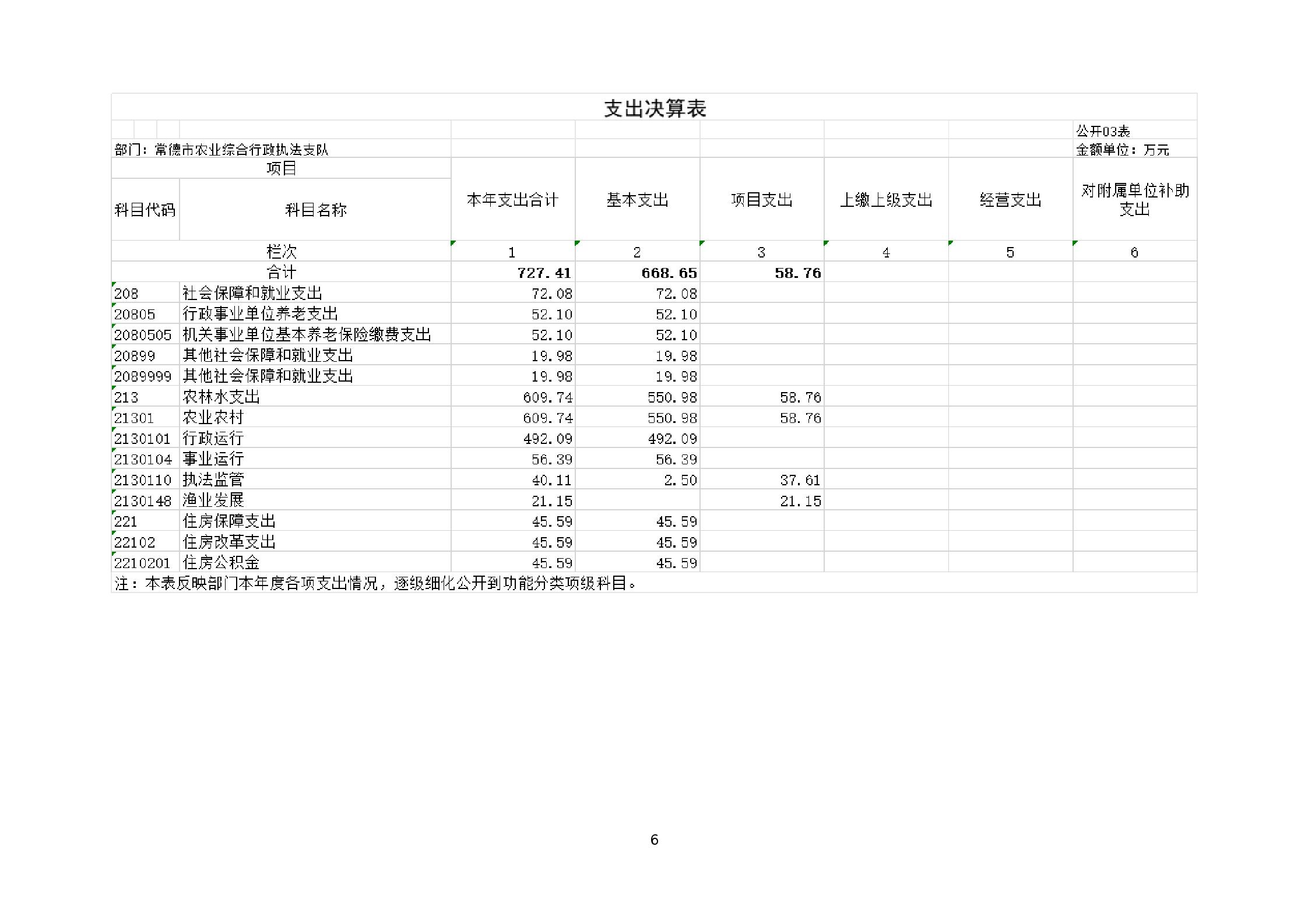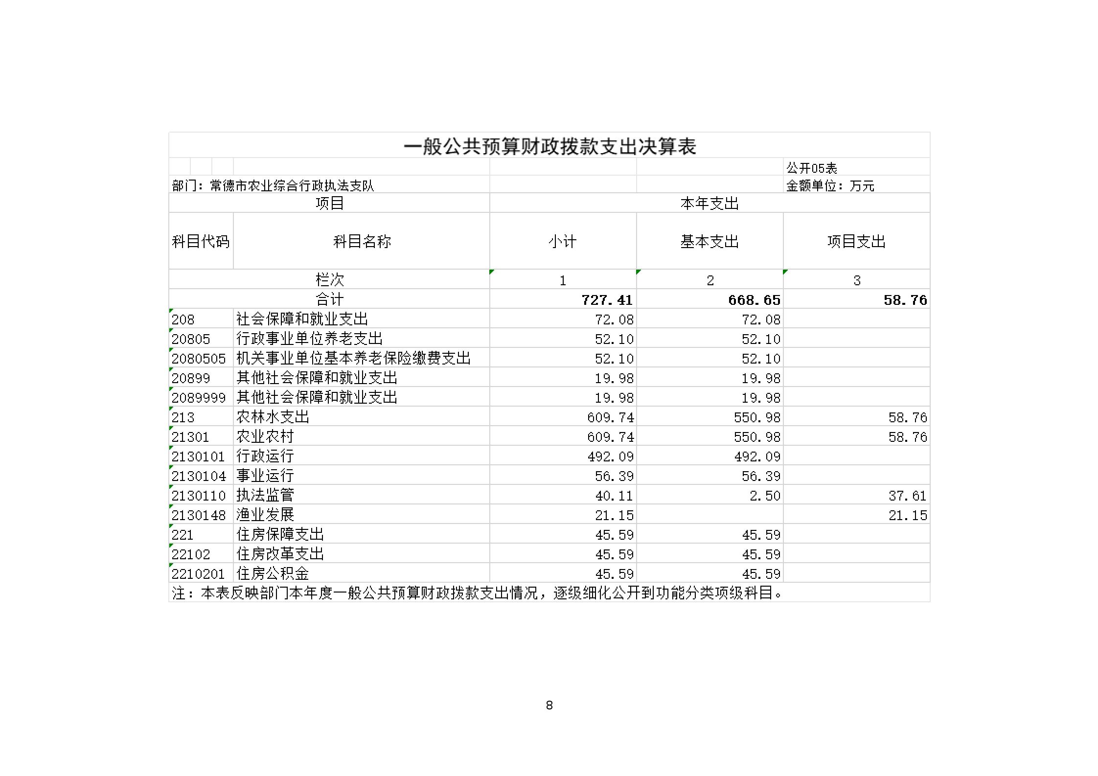 (二)决算单位构成。常德市农业综合行政执法支队2024年部门决算汇总公开单位构成包括:本单位无所属二、三级预算单位,故2024年部门决算编制范围的为常德市农业综合行政执法支队本级。
