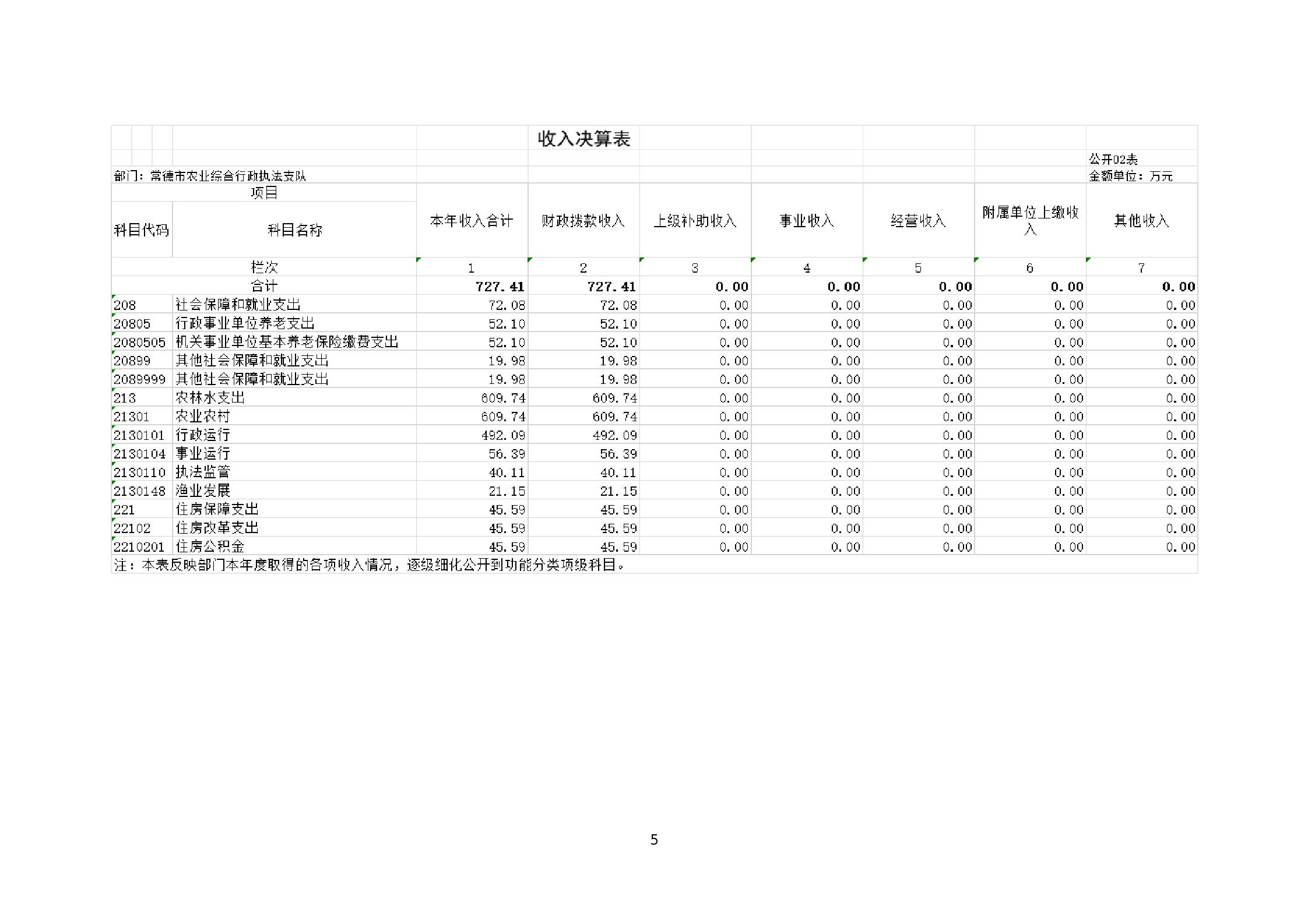 5、农林水支出(类)农业农村(款)执法监管(项)。