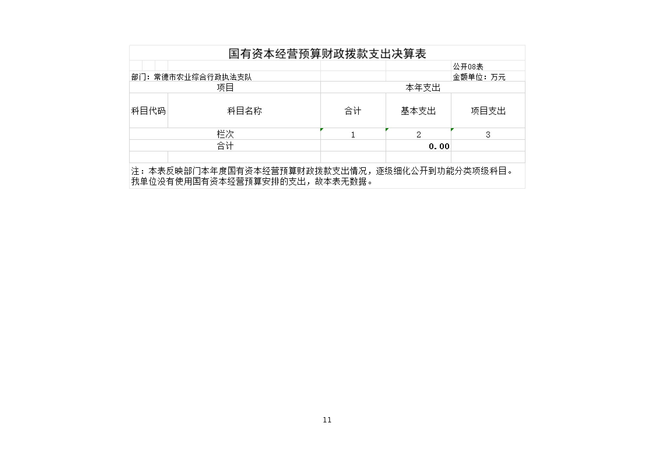 (一)内设机构设置。常德市农业综合行政执法支队内设机构包括:本单位内设科室3个,所属事业单位0个。