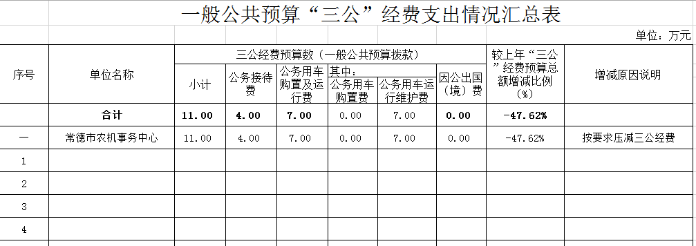 常德市农机事务中心2021年一般公共预算“三公”经费支出情况表