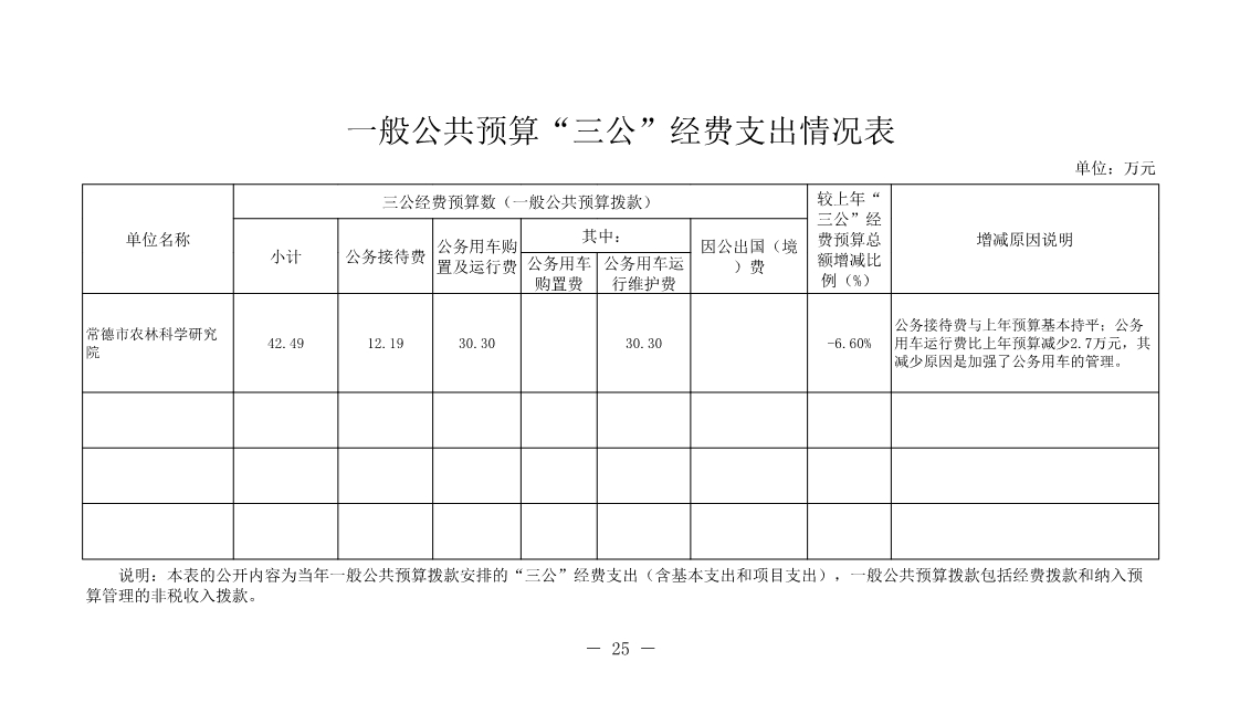 | 单位名称 | 三公经费预算数(一般公共预算拨款) | 较上年“三公”经费预算总额增减比例(%) | 增减原因说明 |
