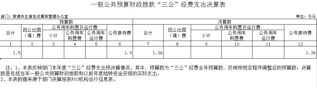 常德市生猪定点屠宰管理办公室2020年一般公共预算“三公”经费支出情况决算表