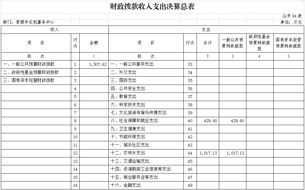 四、财政拨款收入支出决算总表