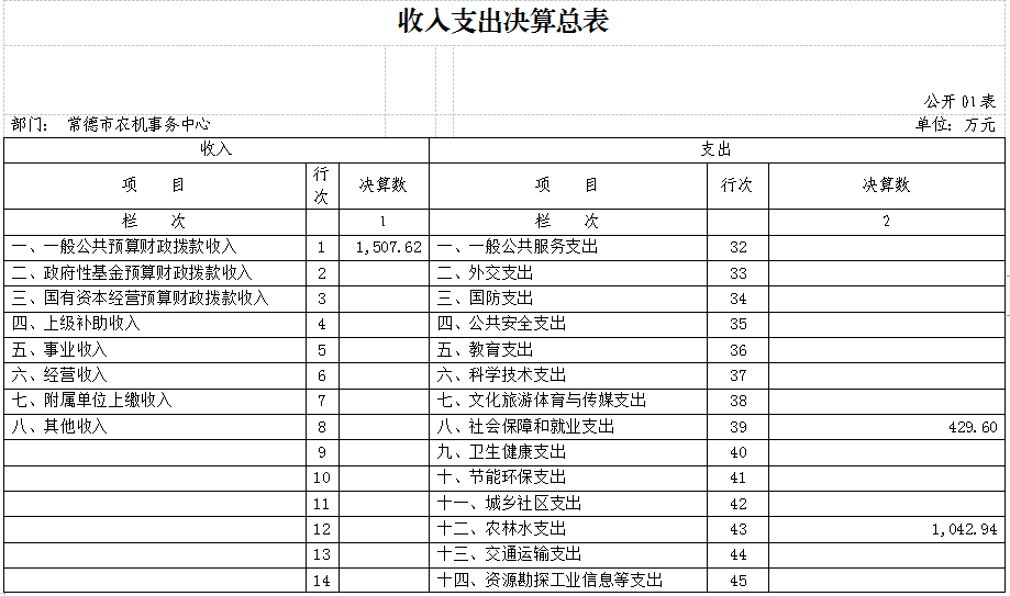 一、收入支出决算总表