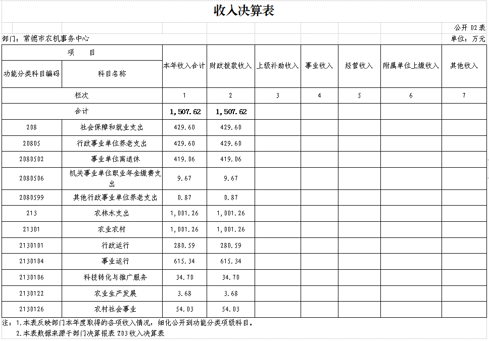 2021年度收入合计1507.62万元,其中:财政拨款收入1507.62万元,占100%;上级补助收入0万元,占0%;事业收入0万元,占0%;经营收入0万元,占0%;附属单位上缴收入0万元,占0%;其他收入0万元,占0%。