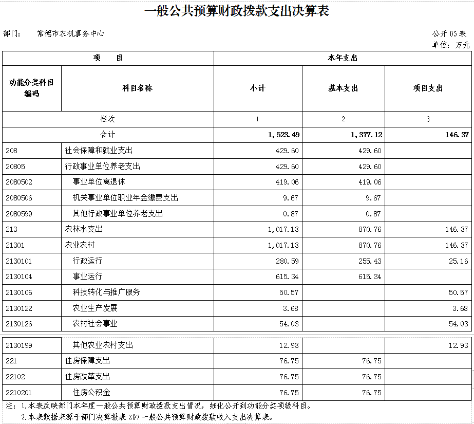 一般公共预算本年支出合计1523.49万元,其中:基本支出1377.12万元,占90.39%;项目支出146.37万元,占9.61%。