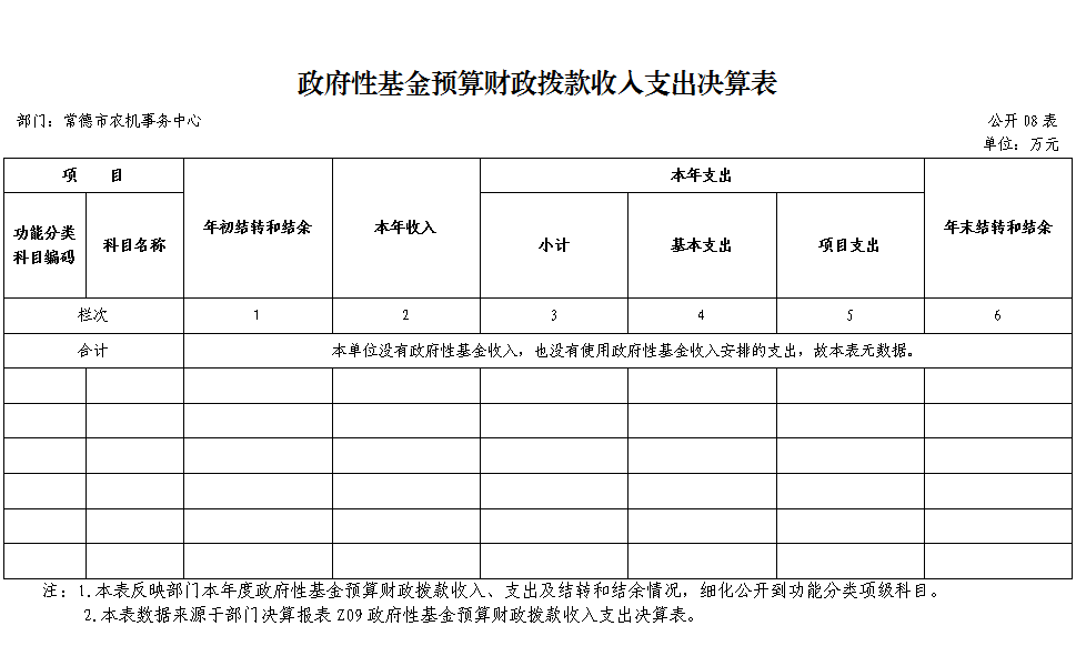 常德市农机事务中心本级及其二级机构均无政府性基金预算支出