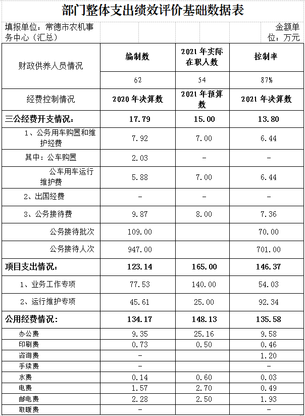(二)决算单位构成。本单位2021年部门决算汇总公开单位构成包括:常德市农机事务中心本级以及所属预算单位常德市农机技术推广站。