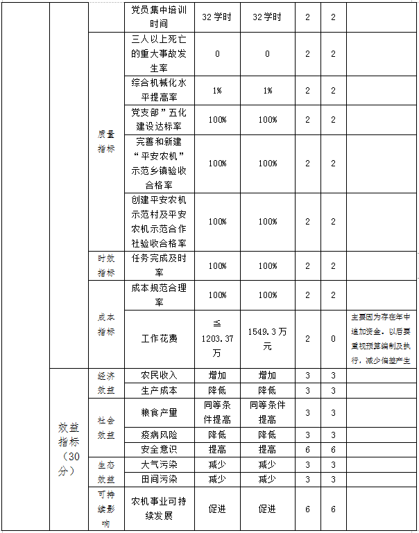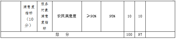 绩效目标完成情况:全市创建了12家省级现代农机合作社,7家省级现代农机合作社示范社,4家省级全程机械化综合农事服务中心,绩效目标完成。